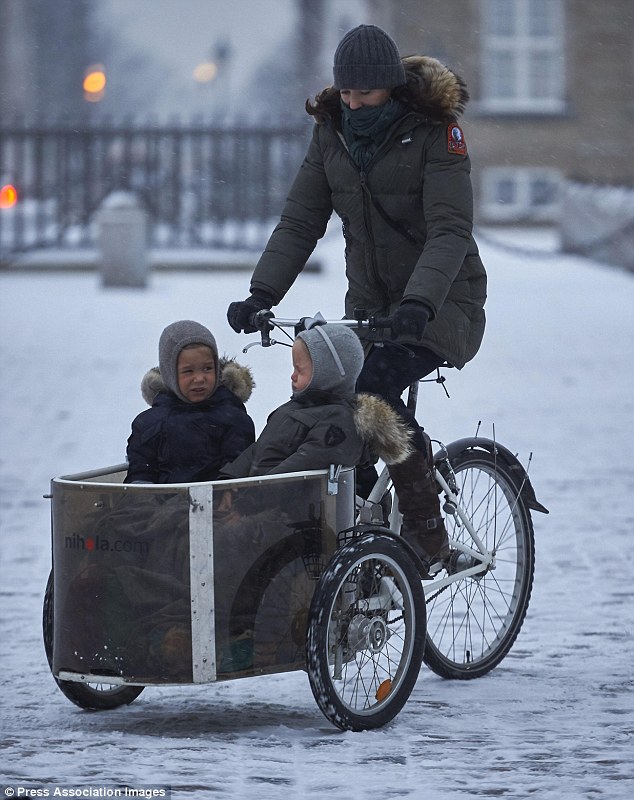 Токму затоа Данците не се изненадени од фотографијата на која се гледа како своите деца ги носи во градинка со велосипед, и тоа по снегот и на ниски температури.