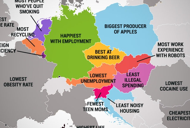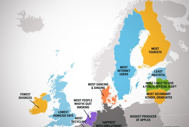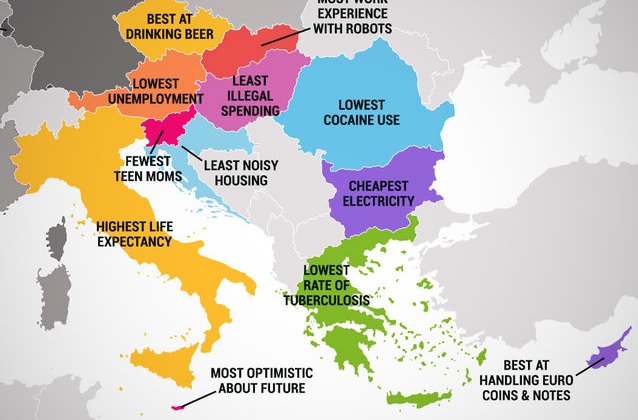 Европската Унија има 28 држави членки, но секоја од нив е уникатна на свој начин. Thrillist изработи мапа на ЕУ во која покажува во што е најдобра секоја држава.