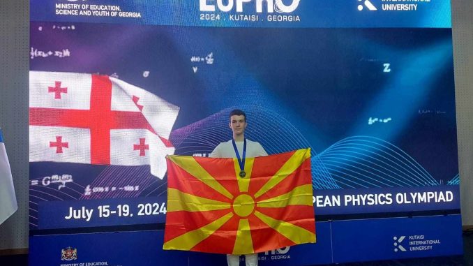 Јан Стојановски, го освои првиот ЗЛАТЕН МЕДАЛ за Македонија на 8. Европската олимпијада по физика која од 15 до 19 јули 2024 година се одржа во Кутаиси, Грузија.