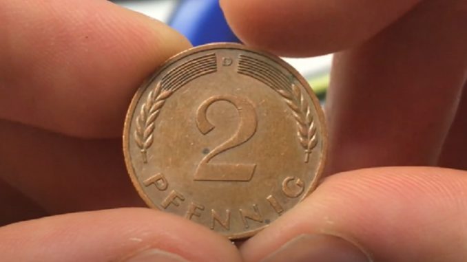 Најголем плус за вашиот паричник може да го направи паричка од 2 фенинга, пишуваат германските медиуми. Германските медиуми пишуваат дека монетата од 2 фенинга кои се особено вредни биле исковани пред 1969 година. Дотогаш монетите се уште се правеле од чист бакар. Подоцна, железото се користело како материјал.