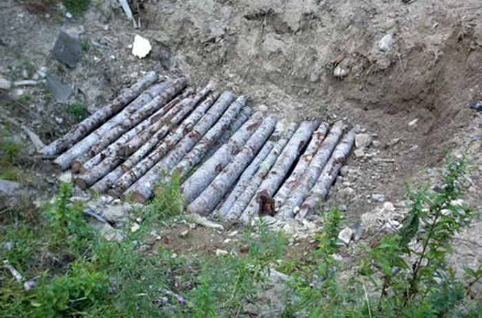 Веднаш под тој тенок слој се наоѓало некакво гнило дрво. Потоа наишол на нешто што според движењето на сврделот можело да се опише како метален предмет со форма на лост. Под тоа следувал слој од поситни метални парчиња, потоа повторно лостови и најпосле пречка од тврдо железо.